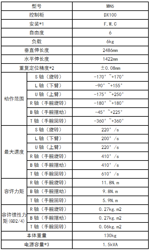 *1:小型機(jī)種:負(fù)載在20kg以下的MOTOMAN機(jī)器人